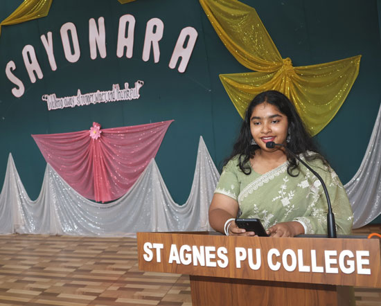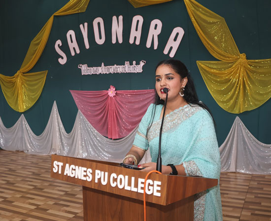 Representing their respective streams, Pratheeksha Rao from Arts, Sonaly Ferrao from Commerce, and Angelina D’Silva from Science eloquently expressed the collective journey of the students at St Agnes. Their reflections resonated deeply, capturing the essence of shared experiences and cherished memories.