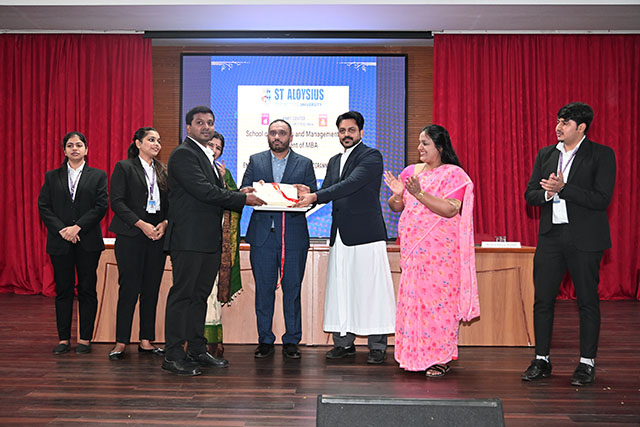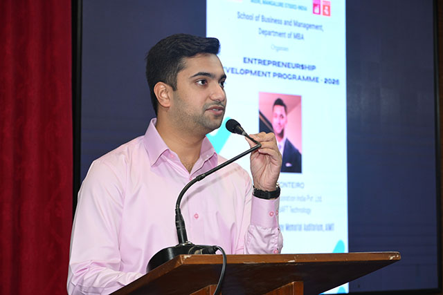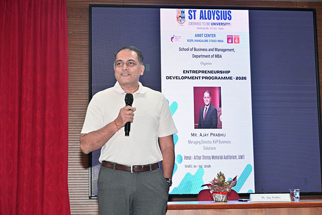Mangaluru, Feb 11: The School of Business & Management, Department of MBA, St Aloysius (Deemed to be University), successfully organized the Entrepreneurship Development Programme (EDP) – 2026 on February 10 at the Arthur Shenoy Memorial Auditorium, AIMIT. The full-day event, brought together eminent industry leaders, faculty, and aspiring student entrepreneurs for an engaging exchange of ideas and experiences.