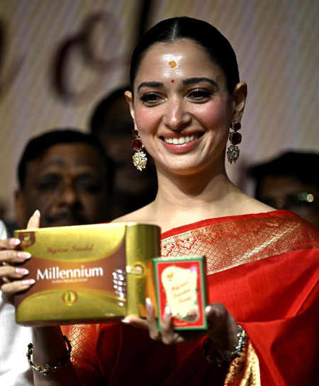 Bengaluru, Feb 11: Actress Tamannaah Bhatia formally assumed charge as the brand ambassador of Karnataka Soaps and Detergents Limited (KSDL) on Tuesday, even as her appointment continued to spark political criticism over the choice of a non-Kannada-speaking actor to represent the iconic Mysore Sandal Soap.