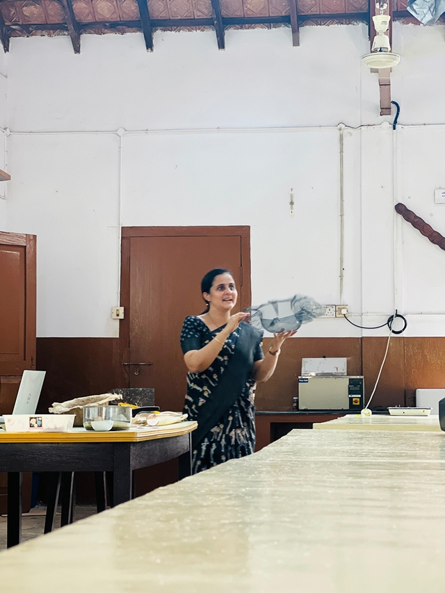 Another significant session was conducted by Dr Sonia Lobo, head of the Department of Botany, who introduced the concept of paper production from banana pseudostem. She explained how agricultural waste can be effectively utilised to manufacture paper, thereby reducing deforestation and promoting sustainable alternatives to conventional paper production. This session successfully linked waste management with entrepreneurial opportunities.