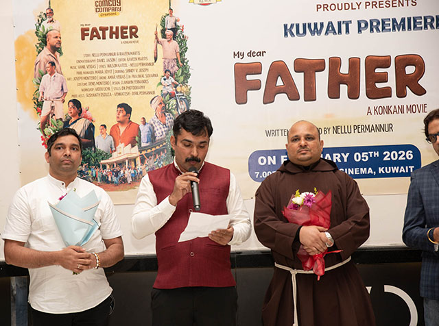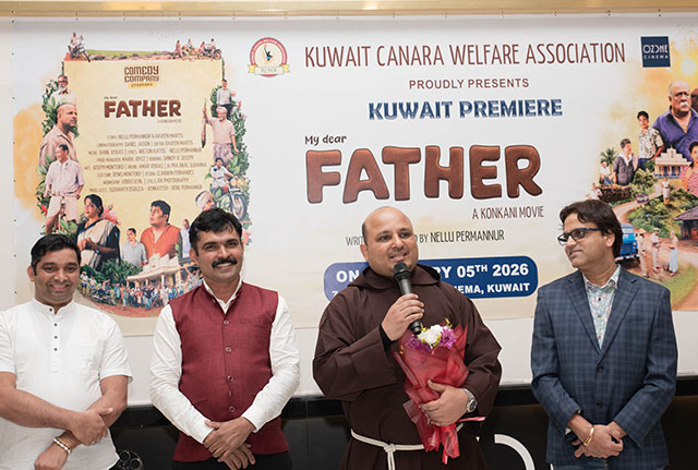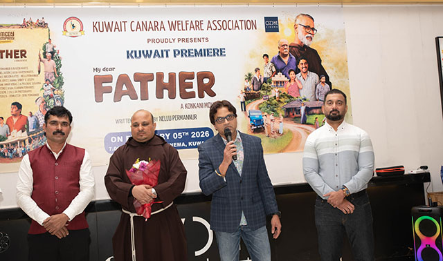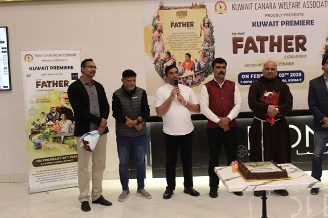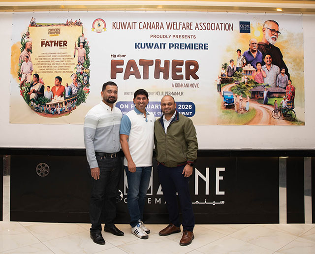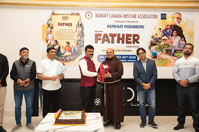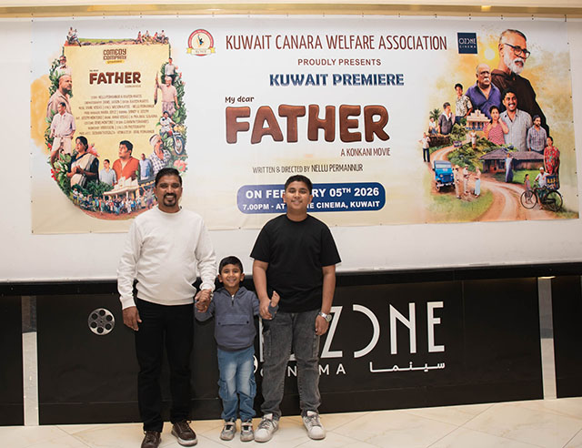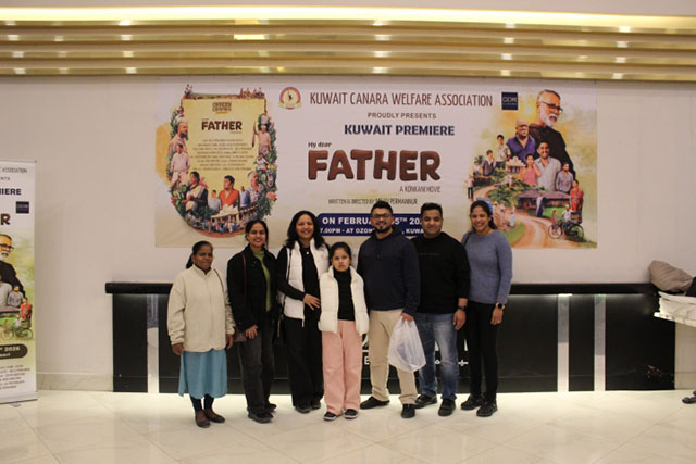Kuwait, Feb 14: Kuwait Canara Welfare Association (KCWA) hosted the much-anticipated premiere of the Konkani movie ‘My Dear Father’ on February 5, 2026, at Ozone Cinema, Khaitan. The event received an overwhelming response, with both premiere shows going houseful on the inaugural day.