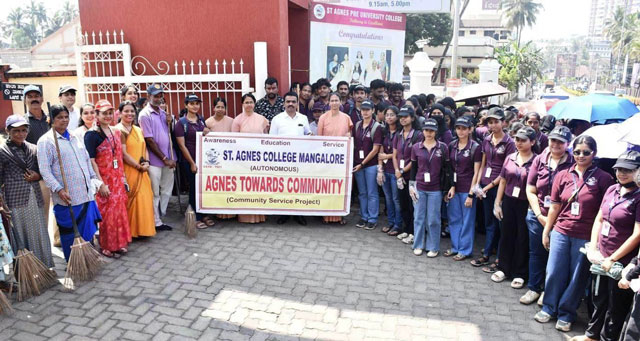 Mangaluru, Feb 16: Agnes Towards Community (ATC), St Agnes College (Autonomous) organised a Street Cleanliness Drive on February 14. The area chosen for cleanliness was the stretch from Kankanady market to Mallikatte market. The cleanliness drive was done on the footpath areas of the stretch.