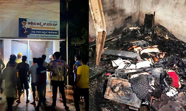 As usual, the shop owner Phaniraj Hathwar Koravadi had locked the shop and returned home when an electrical short circuit occurred, resulting in the computer, printer, stationery items, inverter battery, chairs, tables and other equipment inside the shop being completely destroyed in the fire. The loss is estimated to be over Rs 6 lac.