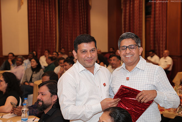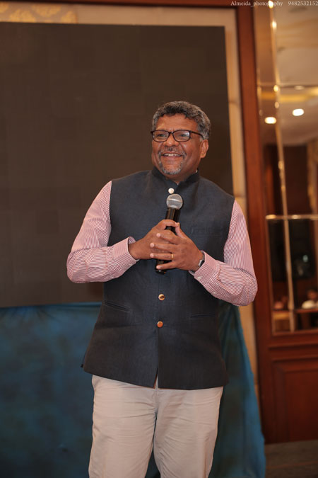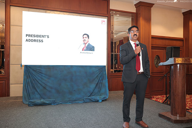 In the president’s address, Pramod emphasized the importance of collaboration. He shared key examples of collaborative successes between KE Bangalore and KE Dubai members – amalgamating online and offline businesses and overcoming geographical boundaries. In local context, he reaffirmed the book launch of Waves of Grit earlier this month that was a tangible consequence of collaborated execution – an idea planted by Immediate past president, Claudius Pereira, and nurtured by former KE director memberships James Coelho and supported to publication by Nigel Fernandes (ATC Publishers) and Peter Anil Rego (Brilliant Printers). In his reflective anecdote, he showcased the value of 1 + 1 being greater than 2 for entrepreneurial mindsets and those who knew how to collaborate. In a short slideshow on a recent survey of KE members, Pramod also highlighted the compounding effects of networking and the underlying value of KE: ‘Giving’.