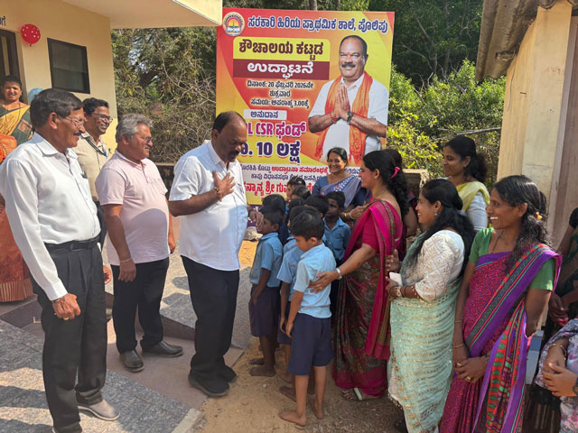 Udupi, Feb 20: A newly constructed toilet block was inaugurated at Government Higher Primary School, Polipu, in Kaup on February 20, by Kapu MLA Suresh Shetty Gurme in the presence of officials from Mangalore Refinery and Petrochemicals Limited (MRPL), the school headmaster, and members of the School Development and Monitoring Committee (SDMC).