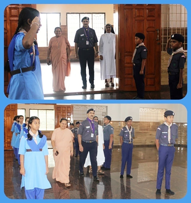 Sr Melissa, in her address, congratulated the scouts, guides and their mentors for organising the programme very creatively. She urged the students to aim higher, serve society selflessly, and draw inspiration from Sergeant Ancel DCosta, who aspires to serve the nation through the Armed Forces.