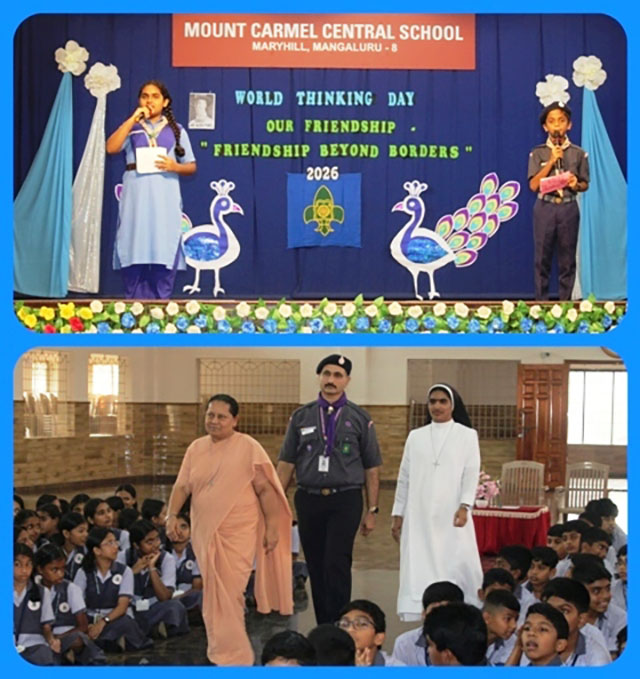 Mangaluru, Feb 22: The Scouts and Guides of Mount Carmel Central School, Mangaluru celebrated World Thinking Day with great enthusiasm and fervour on February 19 in the school auditorium.