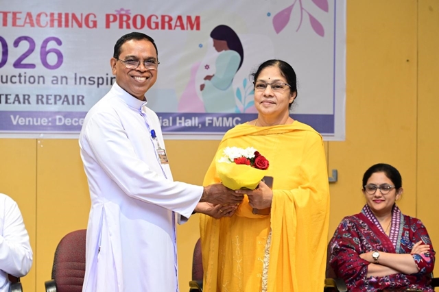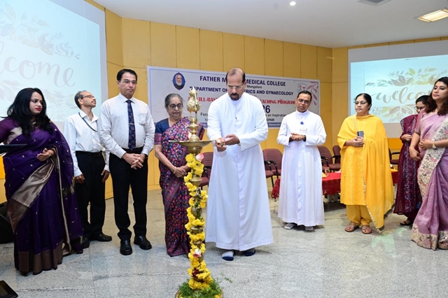 The inaugural ceremony commenced with invocation and welcome address by Dr Mahesha Navada, (prof and HoD dept of OBG) followed by the ceremonial lighting of the lamp. The chief guest, Dr Rathnamala M Desai, professor emeritus, SDM College of Medical Sciences and Hospital, Dharwad, delivered an inspiring address emphasising clinical excellence and continuous learning. The presidential address was delivered by Fr Faustine Lucas Lobo, director, FMCI.