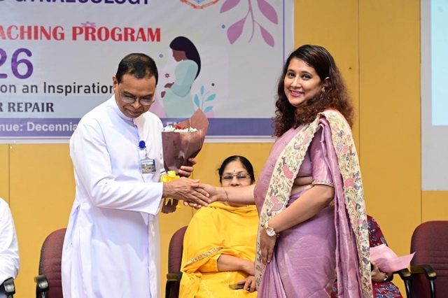 The highlight of the programme was the hands-on workshop on Perineal Tear Repair, conducted by Dr Kameshwari Surampudi, and Dr Vishaka Nagaraj, (consultant, Fernandez Hospital, Hyderbad) which provided structured training in applied anatomy, repair techniques of obstetric anal sphincter injuries, and hands-on practice on simulation models .