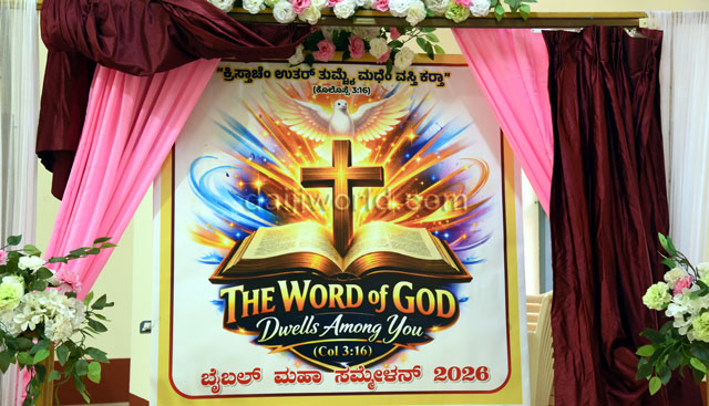 Mangaluru, Feb 23: The diocese of Mangalore, through the Charismatic Service Communion in association with the Diocesan Biblical Commission, is set to organise a grand four-day ‘Mega Bible Convention 2026’ at the Holy Cross Church grounds, Cordel, Kulshekar. The spiritual event will take place from February 26 to March 1, between 4:00 pm and 8:30 pm daily.