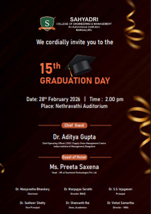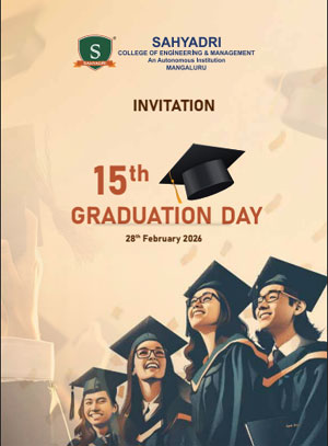 Mangaluru, Feb 26: Sahyadri College of Engineering & Management, Mangaluru, will celebrate its 15th Graduation Day ceremony of Postgraduate Programme on Saturday, February 28, at 2 pm in the Nethravathi Auditorium, Sahyadri Campus.