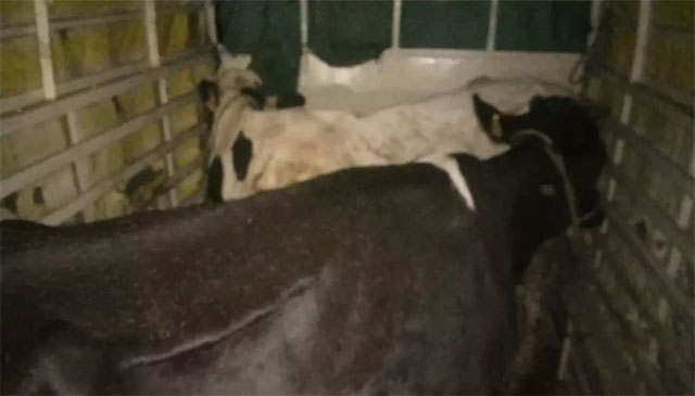The vehicle was found parked by the roadside, and two cows were seen being transported in it in a cruel manner.