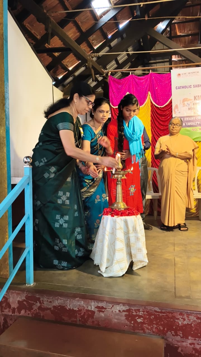 Present on the dais were Fr Maxim D'Souza, parish priest; Dr Praveen Chandra, head, podiatric department; Dr Vaishak Bhat, spine surgeon; Dr Joey Christie, ophthalmologist; Sr Sylvia, superior, Infant Mary Convent; Dennis Apos, vice president, parish pastoral committee; Anitha Aranha, secretary, parish pastoral committee; Reshma Penha, secretary, Catholic Sabha and ICYM president; and Philomena D'Silva, all commission coordinator.