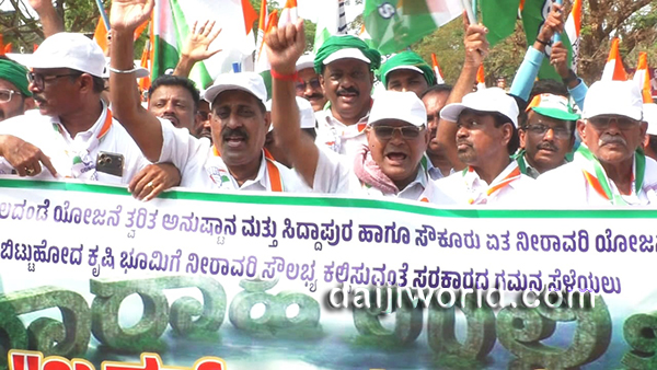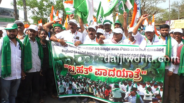 Kundapur, Mar 4: A massive foot march from Kandlur to Siddapura was held demanding immediate implementation of the Varahi Right Bank Canal Project and the provision of irrigation facilities to the neglected agricultural lands under the Siddapur Lift Irrigation Scheme.
