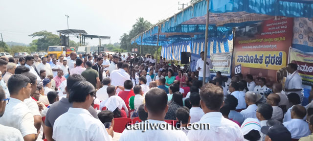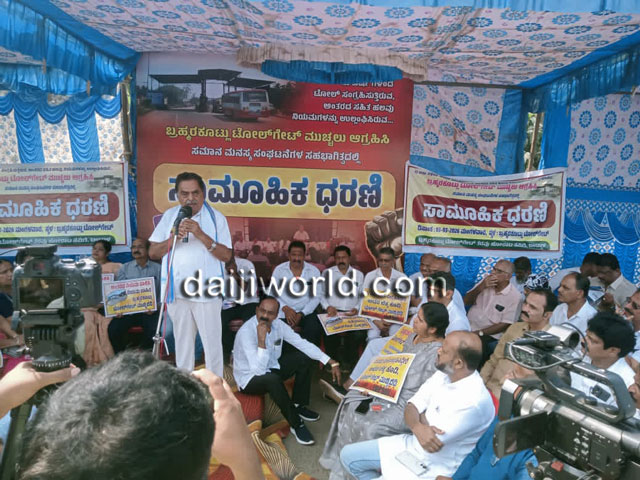 Bantwal, Mar 4: A large-scale protest was held on Tuesday at the Brahmarakootlu toll gate, demanding its closure on the grounds that toll collection has been carried out in violation of rules for the past 23 years. The first phase of the collective dharna was organised with the participation of like-minded organisations.