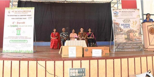 Mangaluru, Mar 5: The Departments of Computer Science and Computer Applications of St Agnes College (Autonomous) in association with Vana Charitable Trust, organised the valedictory programme of the “BeResponsible” E-Waste Collection Drive and “Soleful Steps” on March 4, marking the successful completion of the month-long environmental initiatives held from 31 January to 28 February 2026.