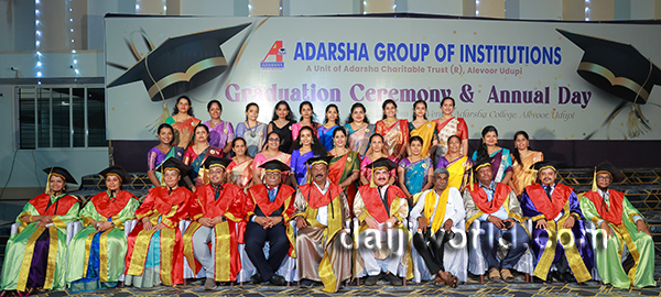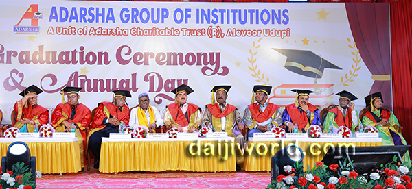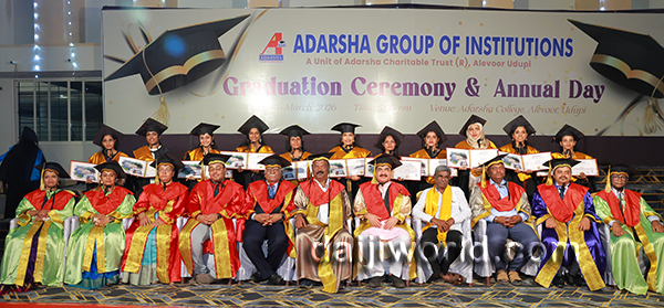 Udupi, March 7: Adarsha Group of Institutions, Udupi, a unit of Adarsha Charitable Trust (R), held its graduation ceremony and annual day celebration with grandeur at Adarsha College, Alevoor, Udupi, on March 5.