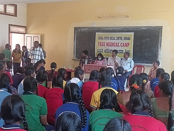 Shivamogga, Mar 7: On the occasion of International Women’s Day, a free health check-up and counselling camp for adolescent girls and women was successfully organised on Saturday, March 7, at Amar Jyothi College, Old Soraba. The camp was jointly organised by Sneha Jyothi Social Service Centre, Soraba and the Government Hospital, Soraba.