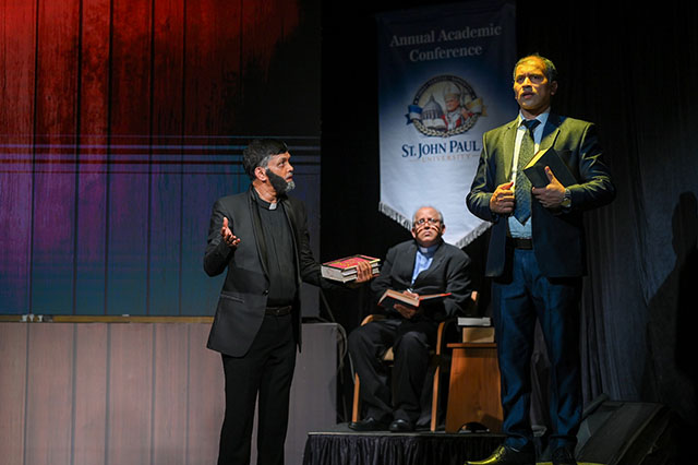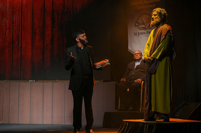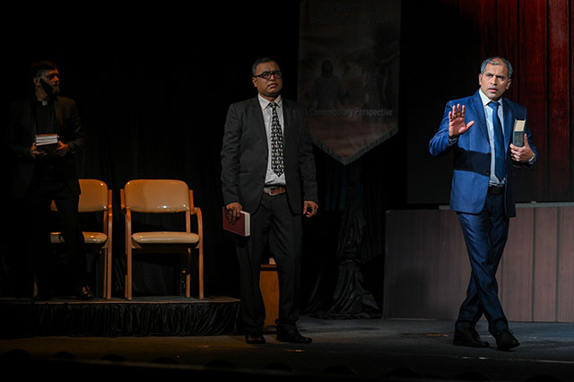 Fr Valerian D’Souza offered the opening prayer and wished the entire team success. Dr Ronald Serrao briefly introduced the theme of the drama and explained that the play centred on the death and resurrection of Jesus Christ, presenting the truth behind these events and encouraging believers to deepen and strengthen their faith.