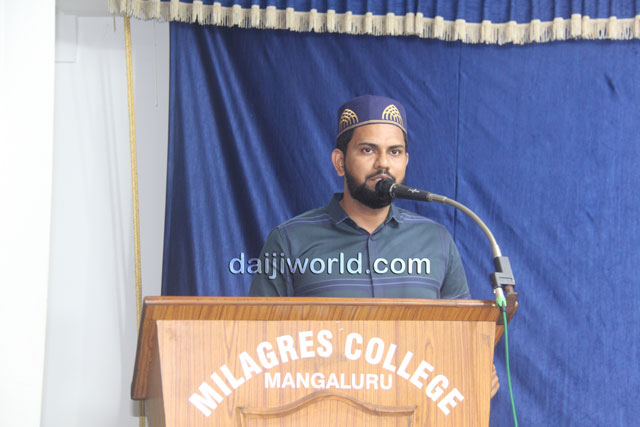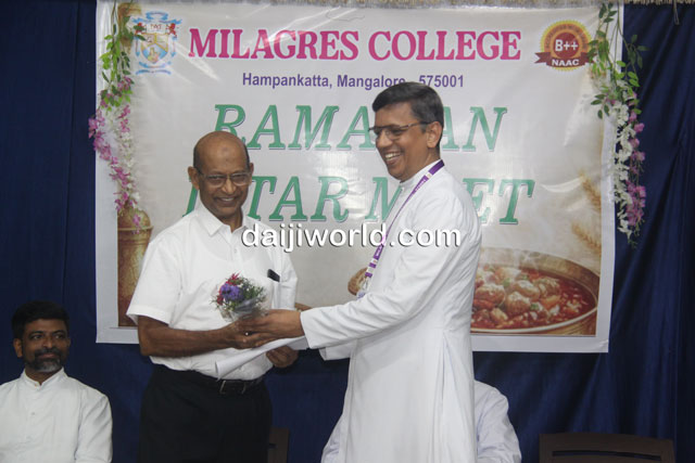 The programme was presided over by Fr Bonaventure Nazareth, correspondent of Milagres Educational Institutions. On the occasion, retired principal of Badriya Educational Institutions, Prof Ismail, addressed the gathering and spoke about the significance of Ramadan. He said that Ramadan is a sacred festival for Muslims and it is also the month in which the holy book, the Quran, was revealed to the world. He emphasized that fasting during Ramadan is not merely about controlling hunger, but about staying away from bad habits and leading a disciplined life. He further added that the values learned during Ramadan should not be limited to the fasting period alone but should be practiced in everyday life.