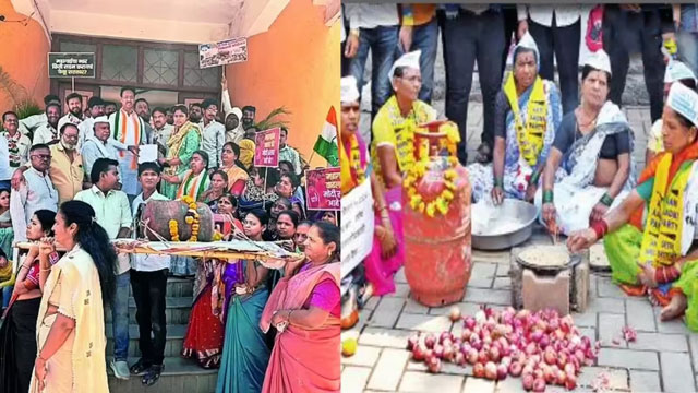 In Chikhli, a symbolic funeral procession of gas cylinders was held near the tehsil office, while women party officials and workers performed a symbolic act of placing flatbreads on stoves to protest both the price hike and shortages. Congress district president Rahul Bondre criticized the central government, saying, “Decisions taken by the U.S. are shaping our country’s policies. Despite anticipating the war, the government failed to plan properly. This highlights how flawed their policies are.”
