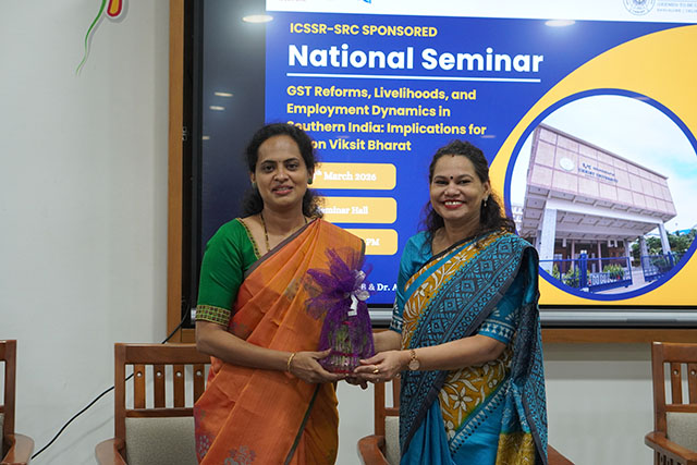 Expanding the discussion to the broader fiscal federalism framework, Dr Rajeshwari U R analysed the structural implications of GST reforms for southern states. She noted that the rationalisation of GST slabs, from multiple rates to a simplified structure, has improved tax administration but also generated concerns about revenue losses for high-contributing states. According to her, manufacturing-intensive states in southern India could experience short-term fiscal stress as lower tax rates reduce immediate revenue inflows. “GST rationalisation simplifies the system, but the short-term fiscal burden on states, especially in the South, remains a significant policy concern,” she observed.