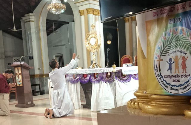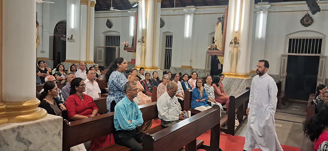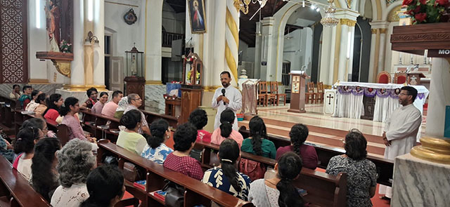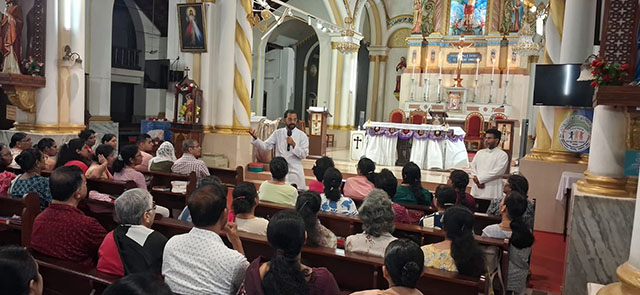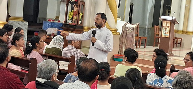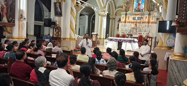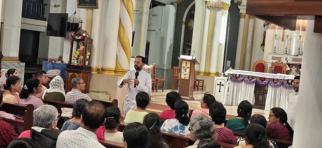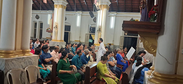 Mangaluru, Mar 16: A Lectors’ recollection was organised at St Sebastian Church Bendur under the guidance of Fr Boniface Pinto, spiritual director of Divya Dharma Karnataka Regional Propaedeutic Seminary. The recollection was centered on the theme ‘Proclamation of the Word of God.’ Around 150 lectors of the parish participated in the spiritual programme which concluded with Eucharistic Adoration.