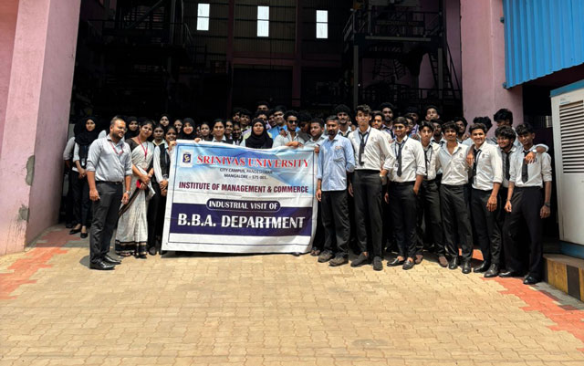 Mangaluru, Mar 17: The department of BBA, Institute of Management and Commerce, Srinivas University, organized an industrial visit to Gurucharan Industries at Baikampady, Mangaluru on March 16 for 59 students from I BBA C and II BBA A sections. The visit was accompanied by Prof Prakruthi and Prof Akshay.