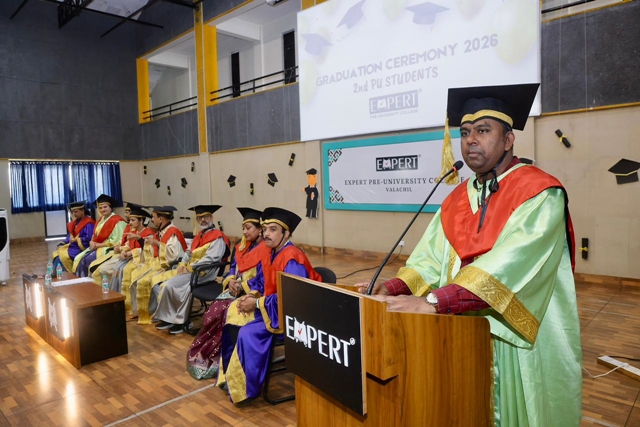 Prof Narendra L Nayak, chairman of the Expert Group of Institutions congratulated the graduating students and emphasized that pre-university education is one of the most crucial phases of life. Prof Nayak highlighted that Expert PU College is renowned for its discipline and conducive learning environment. He encouraged the students to remain hardworking, determined, and to strive to become extraordinary individuals who bring pride to both the institution and the nation.