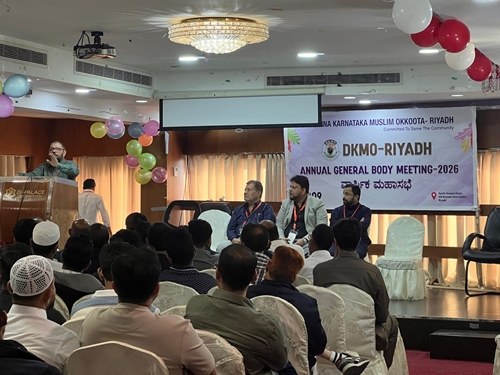 Riyadh, Mar 19: The Dakshina Karnataka Muslim Okkoota (DKMO), Riyadh, successfully held its 16th Annual General Body Meeting (AGBM) recently at the Ramada Hotel, Batha, Riyadh. The meeting witnessed an impressive participation of over 150 members, representing most of the taluks of South Karnataka.