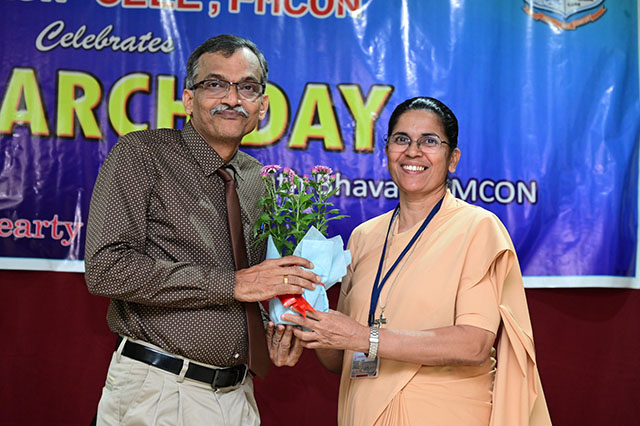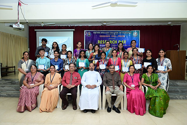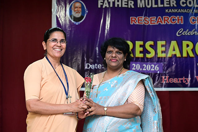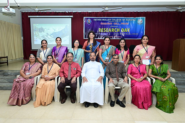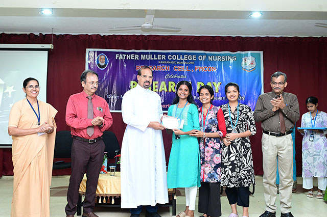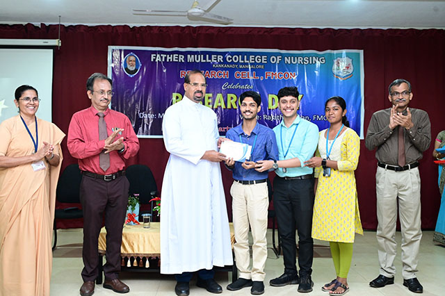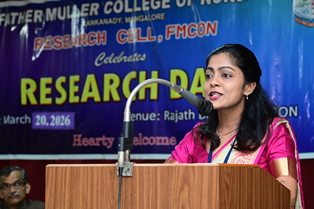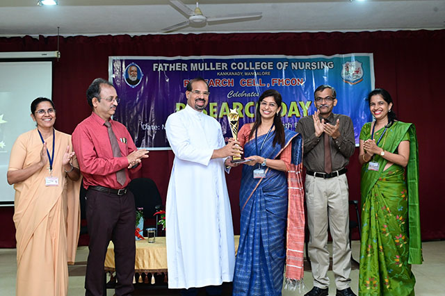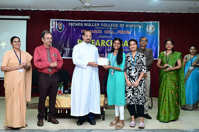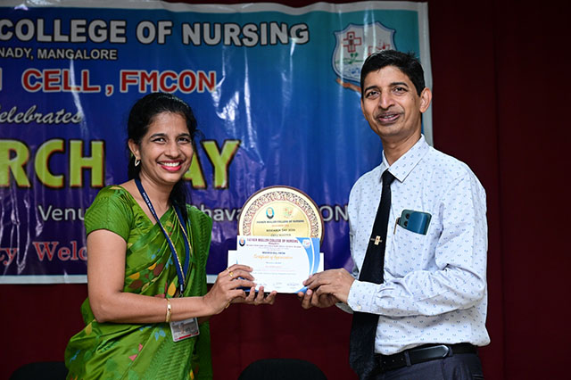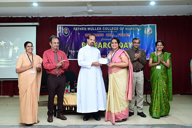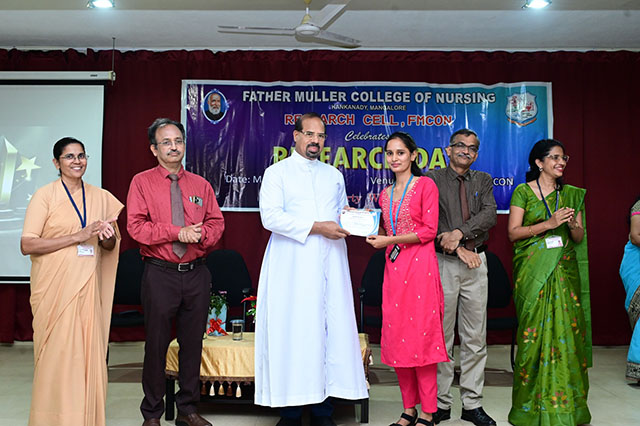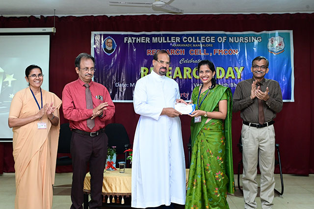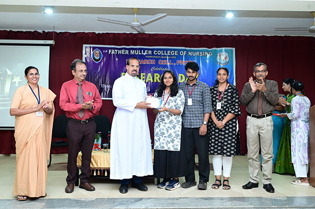 The day was concluded with the valedictory ceremony which was presided by Fr Faustine Lucas Lobo, director FMCI; Dr Shivashankara AR, chief guest, principal of Father Muller College of Allied Health Sciences, Mangaluru; Dr Ramesh Bhat, guest of honour, head of research centre and Sr Prof Dr Dhanya Devasia, principal FMCON. The research cell recognized the student and staff contributions towards research by awarding the best in each category of student researcher award and staff research patent/copyright, publications/paper presentation, grants, book/chapter and overall exemplary researcher award.