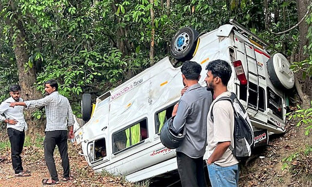 Beltangady, Mar 21: In yet another tragic accident at Charmadi Ghat, a TT vehicle travelling from Bhadravathi to Dharmasthala overturned near the 10th hairpin bend after the driver reportedly lost control on Saturday, March 21.