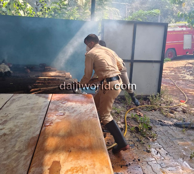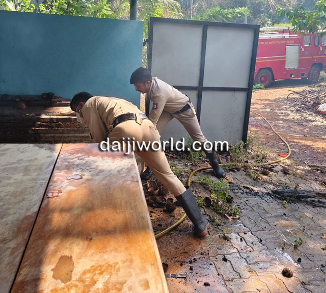 Station Officer Albert Monis, along with assistant station officer Chandrashekhar and team members Rupesh, driver Alwyn, Dinesh, and Bheemappa, responded immediately upon receiving information about the incident. Their swift action successfully contained the fire, saving significant property from damage.