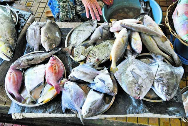 The current fish prices per kg show a slight variation across different varieties. Pomfret (Manji) is now priced at Rs 1,400, down from its earlier rate of Rs 1,550. Seer fish(Anjal) is being sold in the range of Rs 1,100 to Rs 1,000. Indian Mackerel (Bangude) is available between Rs 300 and Rs 260, while Finned Bullseye (Disco Fish) is priced between Rs 180 and Rs 140. Pink Perch (Rani fish) is being sold in the range of Rs 280 to Rs 245, and prawns are currently priced between Rs 340 and Rs 320 per kg.