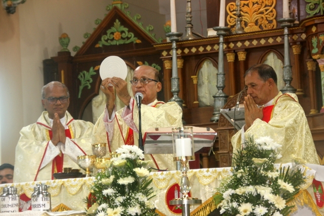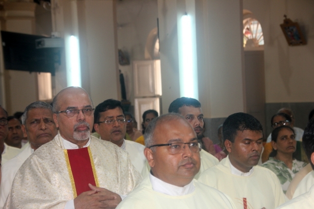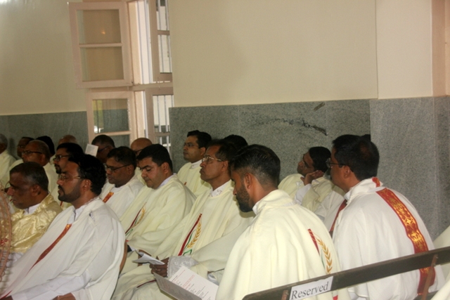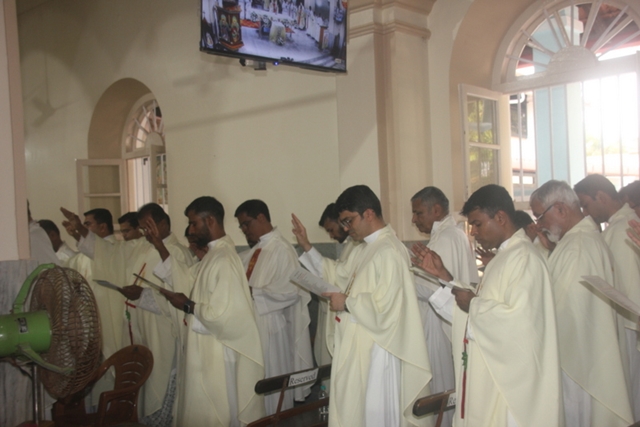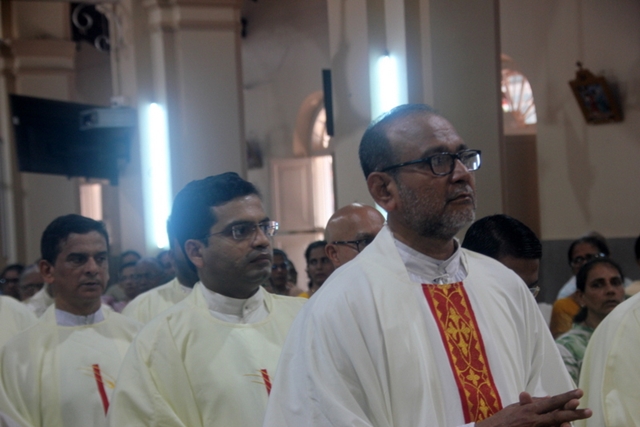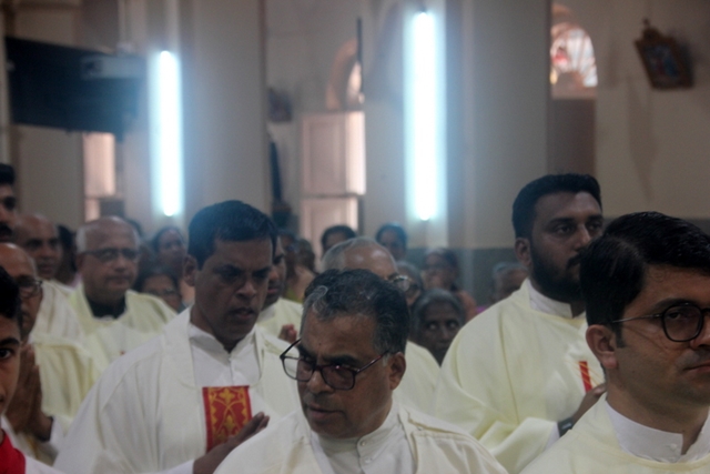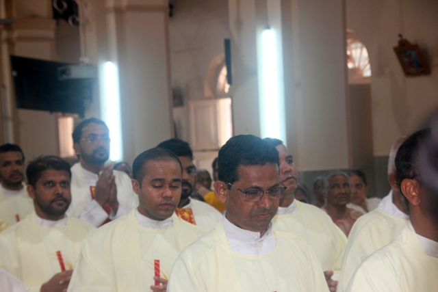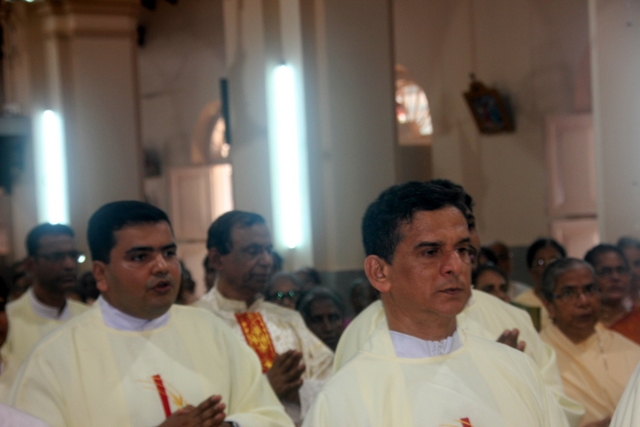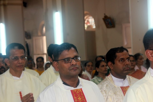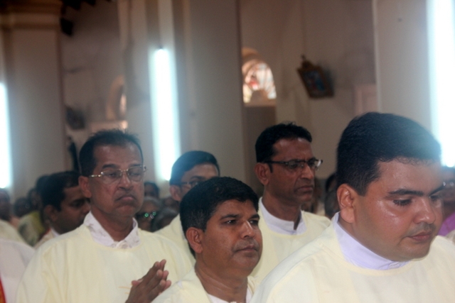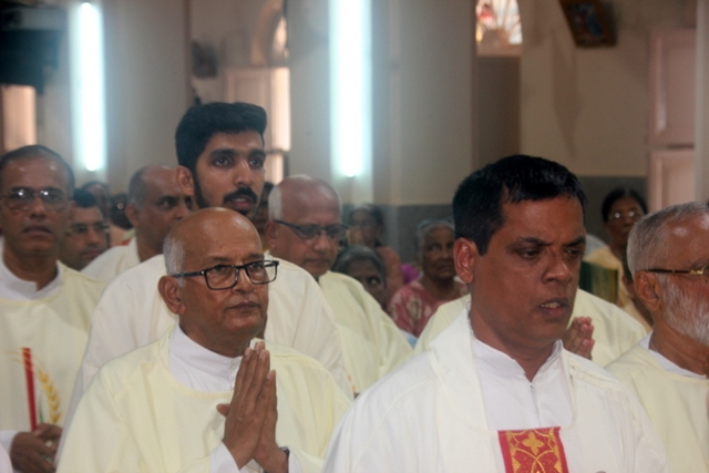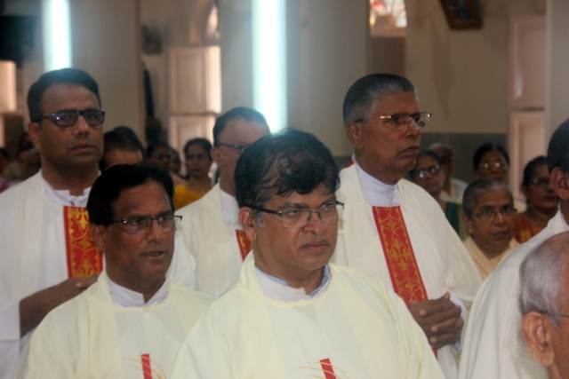 Prior to the mass, the Bishop, designated Bishop along with all the priests gathered at Milagres Tri-centenary Hall and proceeded towards the Milagres Cathedral fifteen minutes earlier than 4pm followed by taken group photo of all the priests gathered.