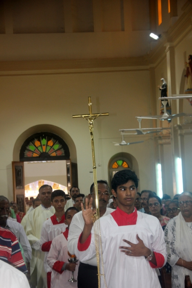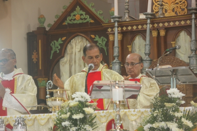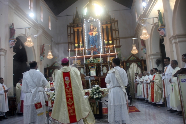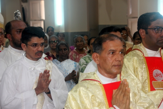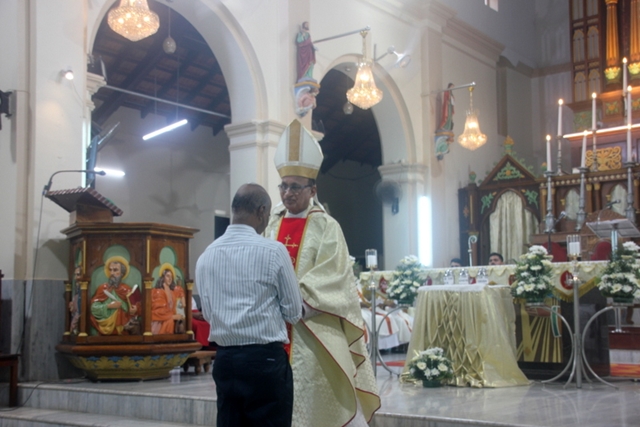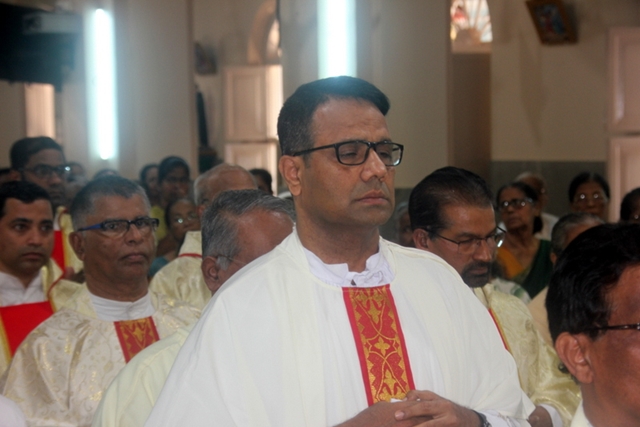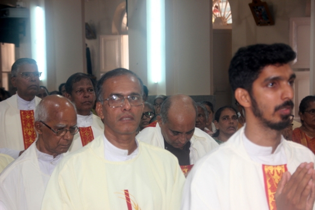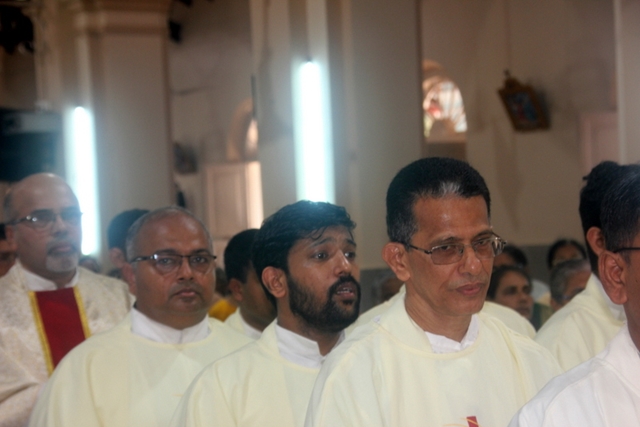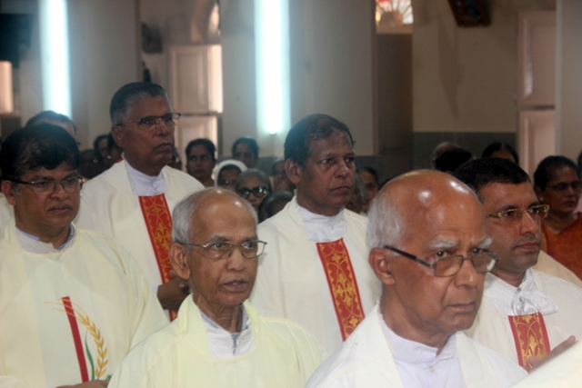Meanwhile, the sponsor of the celebrations, Mr & Mrs Steeven Lewis honoured the Bishop with a decorated candle. Soft drinks served to all the participants after the mass. Around 73 diocesan priests including some retired priests and some nuns of the diocese also present during the mass.