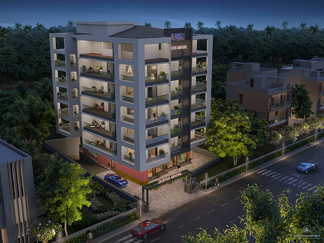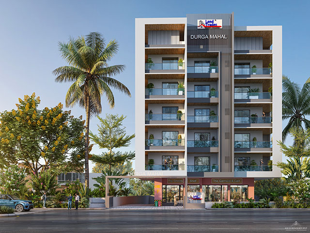 Durga Mahal is a thoughtfully scaled single tower of Ground + 5 floors, deliberately designed to be intimate rather than imposing. With only two exclusive apartments per floor, the entire building comprises just 12 carefully curated homes — making it one of the most exclusive residential offerings of Land Trades.