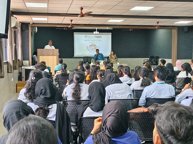The technical sessions were delivered by eminent resource persons: Dr Daniella, professor & head, department of food science and nutrition, St Aloysius College, Mangaluru, who spoke on 'Nutrition across the life cycle: Practical approaches to nutritional assessment'. Rohini Bhadra, senior research nutritionist, St John’s Medical College & Research Institute, Bengaluru, who conducted a hands-on session on 'Diet assessment and meal planning'. Dr Sreeshyam K S, senior resident, department of community medicine, Father Muller Medical College, Mangaluru, who delivered a session on 'Community-based strategies for life cycle nutrition: Interventions and case studies'.