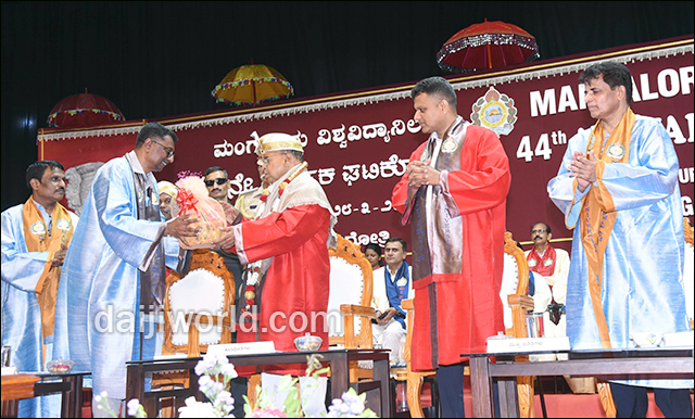 Mangaluru, Mar 28: The 44th annual convocation of Mangalore University was held on Saturday at the Mangala Auditorium on the university campus.