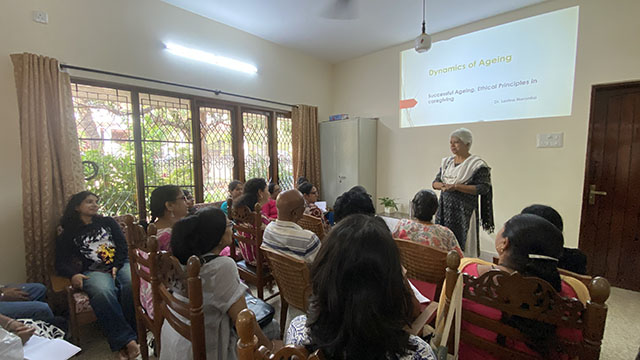 • Day 1: Dr Lavina M Noronha, director of Ave Maria Palliative Care, introduced participants to the dynamics of aging, ethical caregiving, and compassionate companionship.