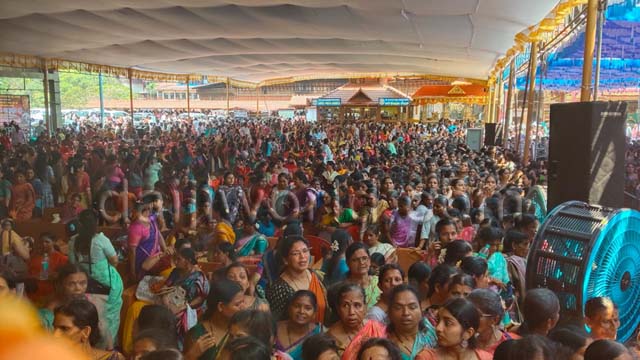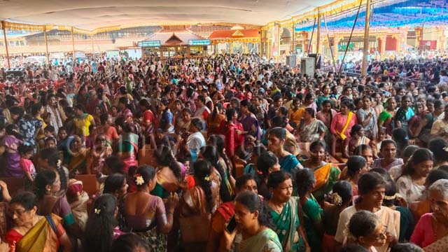 Thousands of devotees gathered at the temple to witness the religious rituals and seek the blessings of Goddess Durga Parameshwari. The temple premises were filled with a massive crowd, creating a spiritual and festive atmosphere throughout the day.