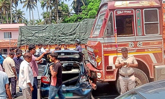 The family of Greeshma, a dentist from Kerala, was returning after visiting Kollur when the accident occurred. A lorry transporting goods from Mumbai to Padubidri collided with their car from behind near Hangaluru.