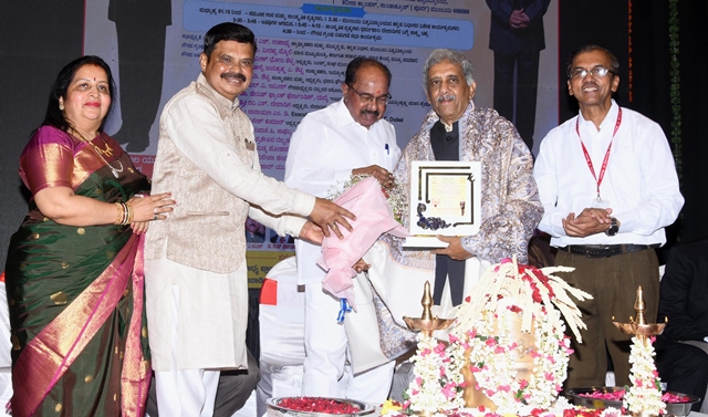 The ceremony, presided over by Dr G N Upadhya, head of the Kannada Department, saw Dharmapal and his wife, Sujata Dharmapal, felicitated by dignitaries for their enduring service.