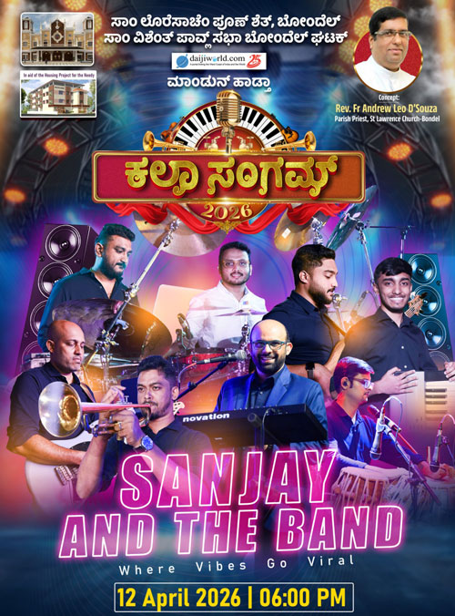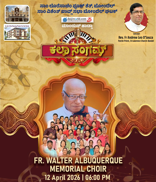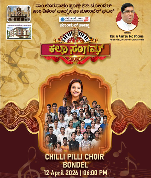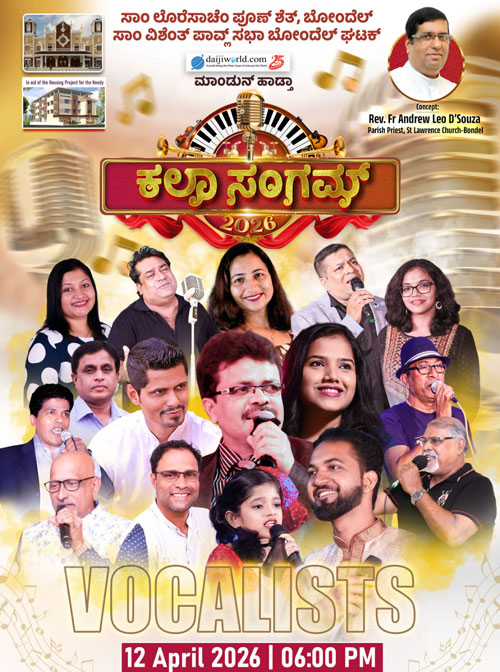Mangaluru, Apr 9: The final preparations are now reaching their peak for the much-awaited musical extravaganza ‘Kala Sangam’, presented by the SSVP Bondel unit in association with Daijiworld media. Set to take place this Sunday, April 12, at 5.30 pm on the grounds of St Lawrence Shrine in Bondel, the event is the inspired concept of parish priest Fr Andrew Leo D’Souza. His vision is to bring together the entire spectrum of the Konkani community—including artistes, generous donors, and art enthusiasts—to support a noble cause under a single roof. A highlight of the evening will be the formal stone blessing ceremony for a housing project for the needy initiated by the SVP, alongside a special ceremony to recognize veteran artists for their lifelong contributions to the Konkani entertainment industry.