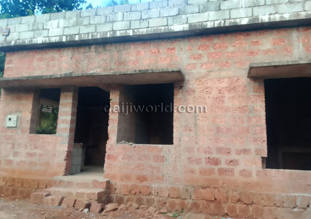 The Bantwal Bantara Sangha, which took responsibility for constructing a new house, has completed most of the work. However, as the project reached its final stage, expected donor support did not materialize, leaving the house surrounded by overgrown vegetation. The responsibility of completing the construction has now fallen on Vanitha Shetty herself, adding to the burden of managing her household and supporting her three daughters' education.
