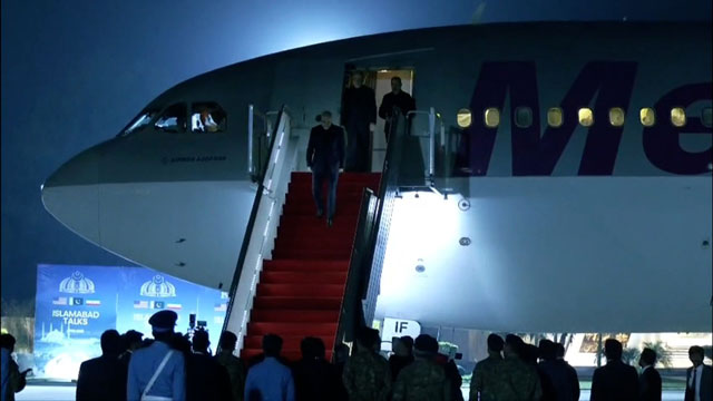 Islamabad, Apr 11: A US government aircraft carrying senior American officials landed in Islamabad on Saturday for peace talks with Iran, according to two Pakistani sources cited by Reuters.