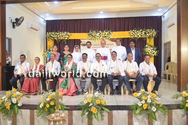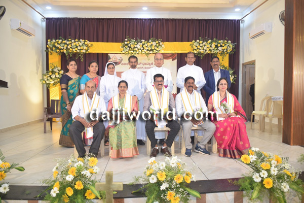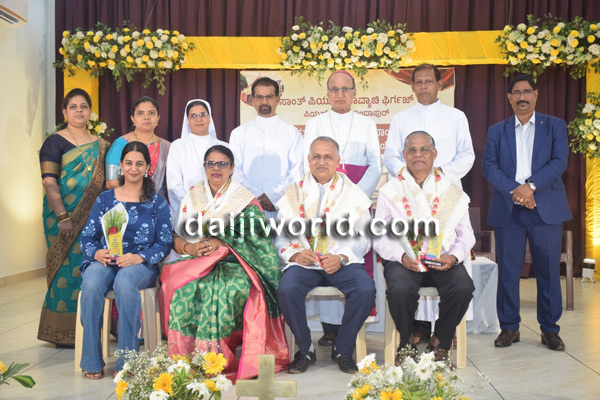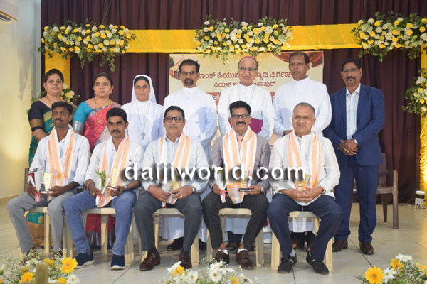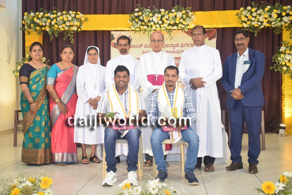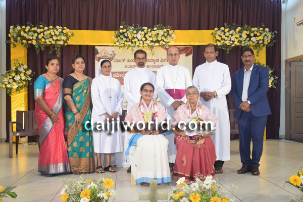 Fr Albert Crasta and James D’Mello were felicitated by the diocese of Udupi for their service.