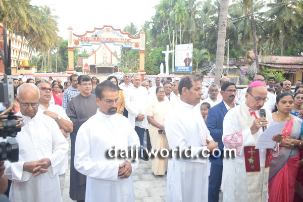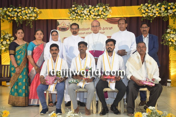 Donors, contributors, sponsors, contractors, building committee members, core committee members, and parish priest Fr Albert Crasta were felicitated by Dr Gerald Isaac Lobo, apostolic administrator of the diocese of Udupi.