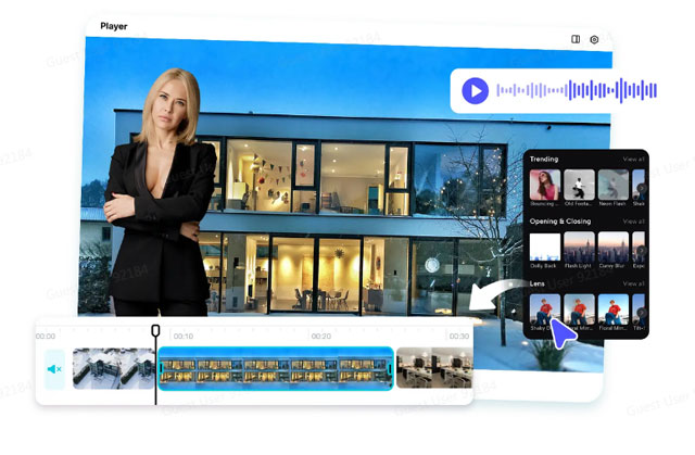 In the video editor, you can customize the video reel by adjusting video clips, text overlays that highlight features, transitions, visual effects, and background music.