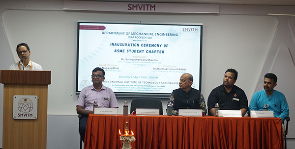 Udupi, Apr 13: Shri Madhwa Vadiraja Institute of Technology and Management (SMVITM), Bantakal, marked a significant milestone with the inauguration of ‘The American Society of Mechanical Engineers’(ASME) Student Section and the installation of its office bearers was held on April 11, at the college campus.